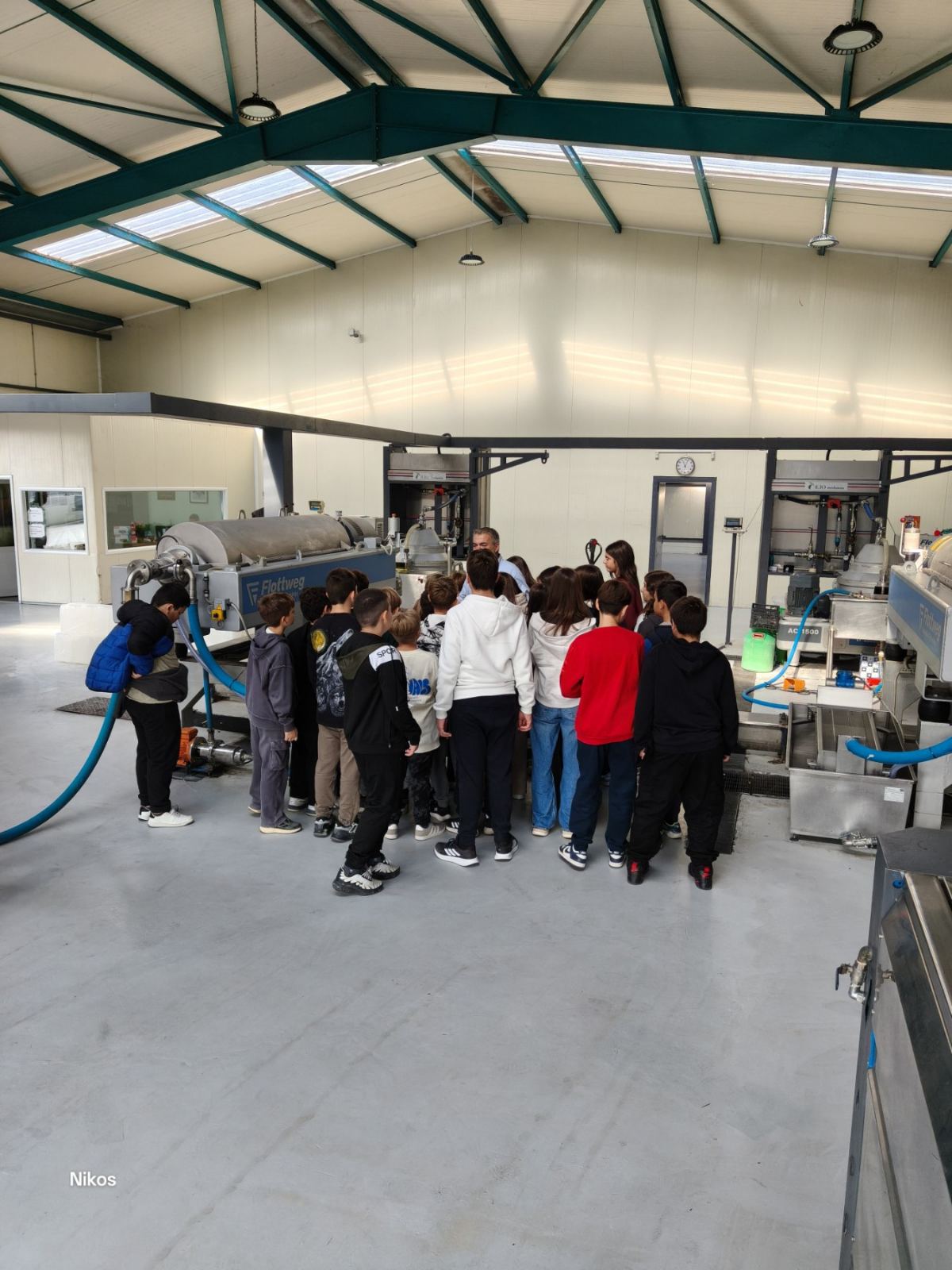 Οι μαθητές της Ε' και ΣΤ' τάξης του Δημοτικού Σχολείου Αγίου Νικολάου είχαν την ευκαιρία να πραγματοποιήσουν μια ιδιαίτερα ενδιαφέρουσα εκπαιδευτική επίσκεψη στο ελαιοτριβείο «Αφοί Χαβαδέλου Α.Ε.». Εκεί τους υποδέχτηκε ο κ. Μάριος και η κα Όλγα, οι οποίοι ανέλαβαν με χαρά την ξενάγηση στον χώρο.