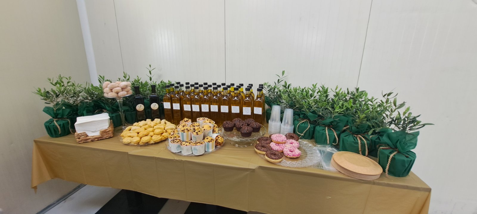 Η επίσκεψη ολοκληρώθηκε με ξεχωριστή φιλοξενία: κεράσματα για όλους τους μαθητές και μικρά δώρα, ανάμεσα στα οποία ένα μπουκάλι ελαιόλαδο και μια γλαστρούλα με δεντράκι ελιάς. Οι μαθητές επέστρεψαν στο σχολείο γεμάτοι εμπειρίες, εικόνες και νέες γνώσεις.